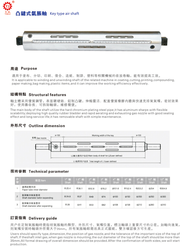 4寸凸键式气胀轴,6寸凸键式气胀轴,8寸凸键式气涨轴