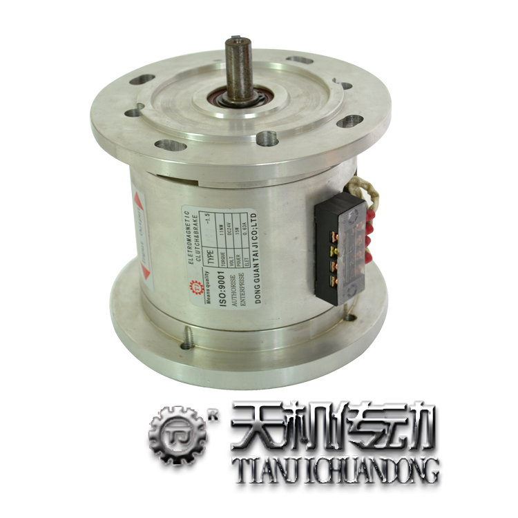 东莞天机传动(台湾天机牌)生产厂家销售的内藏式电磁离合刹车器又称对轴式电磁离合刹车器,使用的是直流DC24V电压,采用进口原材料,台湾生产加工技术,在国内拥有多家代理商经销商。十多年来致力于工业离合器制动器的研发和销售,厂家直销质量保障!内藏式电磁离合刹车器,对轴式电磁离合刹车器的组成与工作原理:TJ-POA型内藏式电磁离合刹车器由一个TJ-A电磁离合和一个TJ-B电磁刹车器组合而成。电磁离合器的转子被固定在入力轴上,电磁离合器的电枢与电磁刹车器则在同轴而形成的出力轴,电磁离合器之轭与电磁刹车器装置于机架上。当电流通过电磁离合器时,出力轴即被带动电磁离合器分离,当电磁刹车通过电流时,出轴轴就会停止运转。